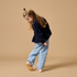 Wijd uitlopende pijpen die recht naar beneden vallen, wat een nonchalante en moderne vibe geeft.