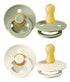 BIBS Colour speen is de originele BIBS speen en is al meer dan 40 jaar op de markt. Hij heeft het bekende ronde BIBS-schild met drie ventilatiegaten en een ronde ring waarin BIBS is gegraveerd.