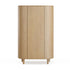 De Kai kledingkast combineert een elegante ovale vorm met slimme opbergruimte. Met drie vakken, twaalf legplanken en een kledingroede biedt deze kast volop ruimte voor kleding en accessoires.