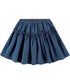 De rok heeft een elastische tailleband, is rond gesneden en heeft een aangezet deel met een speelse rucherand.