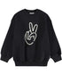 Zwarte sweater van zacht biologisch katoen met een grote print van een handgetekend vredesteken.