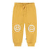 De broek is geel met zachte witte gezichtjes in verschillende stemmingen op de knieën. De broek heeft een elastische tailleband met trekkoord en geribde boorden aan de enkels. Ze is gemakkelijk aan en uit te trekken en biedt veel bewegingsvrijheid. Combineer met de bijpassende sweater voor een complete outfit.