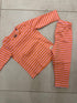 Tweedelige pyjama van Woody. In de gekende kwaliteit dat we van Woody gewoon zijn. Met de roze en oranje streep brengt die net wat extra kleur mee in de avond. Geen tekeningen op voor- of achterkant.