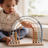 Tel van 1 tot 10, in alle kleuren van de regenboog! Met een telraam in de vorm van een regenboog wordt tellen nog leuker! Schuif de kleurrijke kralen van de ene kant naar de andere en ontdek de verschillende tinten blauw, geel en bruin. Terwijl je kindje spelenderwijs leert tellen, wordt ook de fijne motoriek getraind. En als ze wat ouder zijn kunnen kinderen het telraam gebruiken om te oefenen met rekenen. Een leuke manier om te leren terwijl ze spelen!