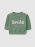 Sweatshirt van 100% biologisch katoen in wafelstructuur. “Smile”-borduursel met reliëf in fleece- en wolgaren. Sluit met knoopjes op de schouder tot 24 maanden.