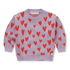 Deze meisjestrui is gemaakt van een knusse katoen-acryl mix en heeft een all-over hartjesmotief in intarsia-breisel: lavendelkleurig met rode hartjes. Super warm en vol liefde — perfect om koude dagen op te fleuren.