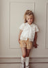 Deze cardigan heeft een verfijnde en zachte uitstraling. De lichte kleur en het ribstofontwerp zorgen voor een warme en comfortabele look. De korte pofmouwen geven het een speelse touch.